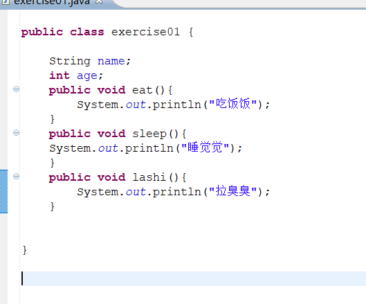 定义一个类,用来模拟“学生”事物,其中就有两个组成部分; 属性(是什么) 年龄 姓名 行为(能做什么) 吃饭 睡觉觉 拉粑粑 那么我我们对应的JAVA里面。 成员变量(属性) String name; int age; 成员方法 public void eat() {} public void sleep(){} public void lachouchou(){}